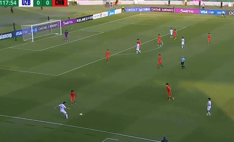 随后在第118分钟,杨希再次面对这位乌兹别克斯坦联赛的主力中场,直接一个干净利落的断抢,对手都不知道球是怎么丢的,完全不是杨希的对手。
